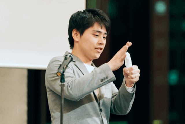 そんな「理論派」の彼ですが、実は社内イベントでは別の顔も。大学4年間のサークル活動で磨き抜いたマジックの腕前を披露し、場を沸かせてくれるエンターテイナーでもあります。2023年の10周年記念パーティーでは、社員とその家族200人近くを前にいくつもマジックを披露し、大いに会場を盛り上げました。