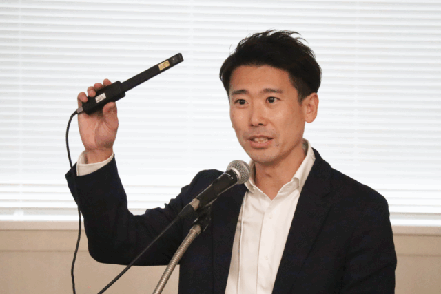 デバイスを手に、「BRAKEPAD SCAN」を紹介する元垣内